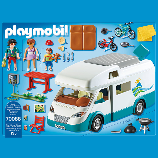 El juego incluye: 1 autocaravana, 3 figuras, 131 accesorios.