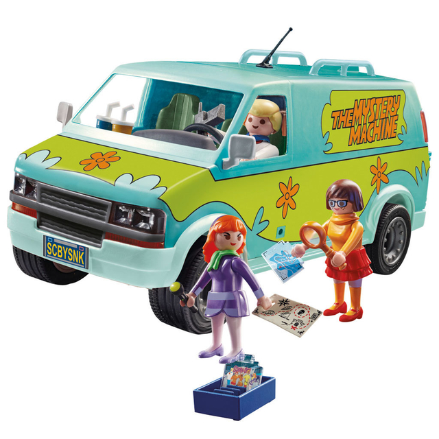 El juego incluye a Fred, a Daphne, a Velma, mapa, linterna, catalejo y otros accesorios.