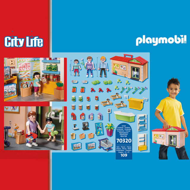 Diviertete con el Maletin de Supermercado de Playmobil. Juega, almacena y lleva contigo. Set para llevar la diversión a todos lados. Compre todas las necesidades en la tienda de comestibles maletín portable