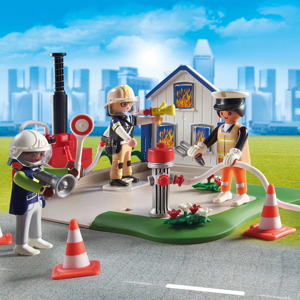el equipo de rescate ya está atendiendo al herido. Con tanta acción y ajetreo, los valientes héroes de PLAYMOBIL tienen que mantener la cabeza fría.