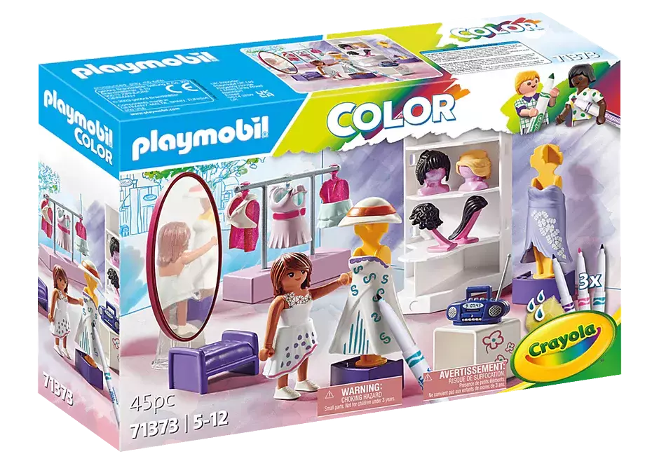 ¡Han vuelto! Después de 45 años, la exclusiva serie PLAYMOBIL Color está regresando. En colaboración con la creativa empresa CRAYOLA, se presentan cinco nuevos conjuntos con figuras básicas blancas y muchos accesorios que se pueden diseñar de forma individual y lavar nuevamente. De esta manera, los niños pueden pintar una y otra vez sus figuras favoritas. Los conjuntos personalizables de PLAYMOBIL Color fomentan de manera lúdica la creatividad y las habilidades motoras finas de los pequeños aficionados al bricolaje. Con el Vestidor, los niños pueden convertirse en diseñadores y crear su propia colección. Ya sea un elegante vestido de noche o faldas extravagantes, los fans de la moda creativa pueden dar rienda suelta a su imaginación aquí. Accesorios detallados como pelucas intercambiables, diversos vestidos, faldas y un rincón de maquillaje completan el conjunto.