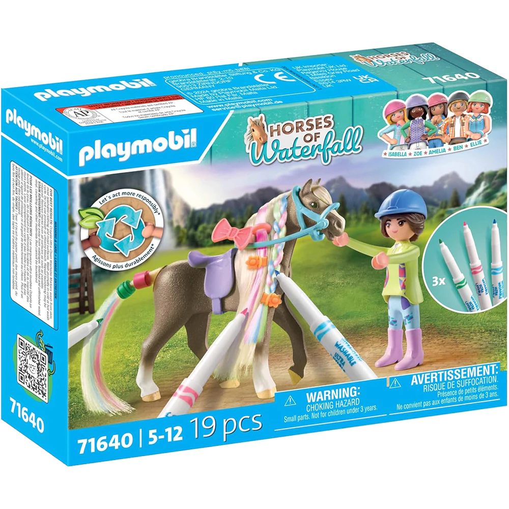 Diviértete personalizando el caballo con el set lavable de PLAYMOBIL y Crayola. Este juego incluye un caballo y tres rotuladores con tinta lavable que permiten cambiar el color del pelo una y otra vez. Además, trae varios accesorios para decorar la crin, ofreciendo horas de creatividad y juego imaginativo.