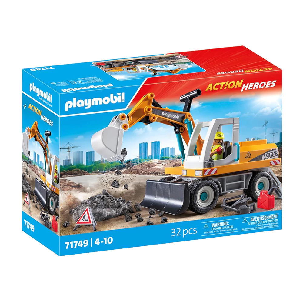 La Excavadora Grande de PLAYMOBIL es el aliado perfecto para cualquier proyecto de construcción. Equipado con una cabina espaciosa, una pala grande y una pala extra para trabajos de tierra, este set permite cavar y levantar materiales con gran facilidad. Su parte superior gira 360° para facilitar la carga y descarga en múltiples direcciones. Además, cuenta con patas de apoyo que garantizan estabilidad en terrenos irregulares.