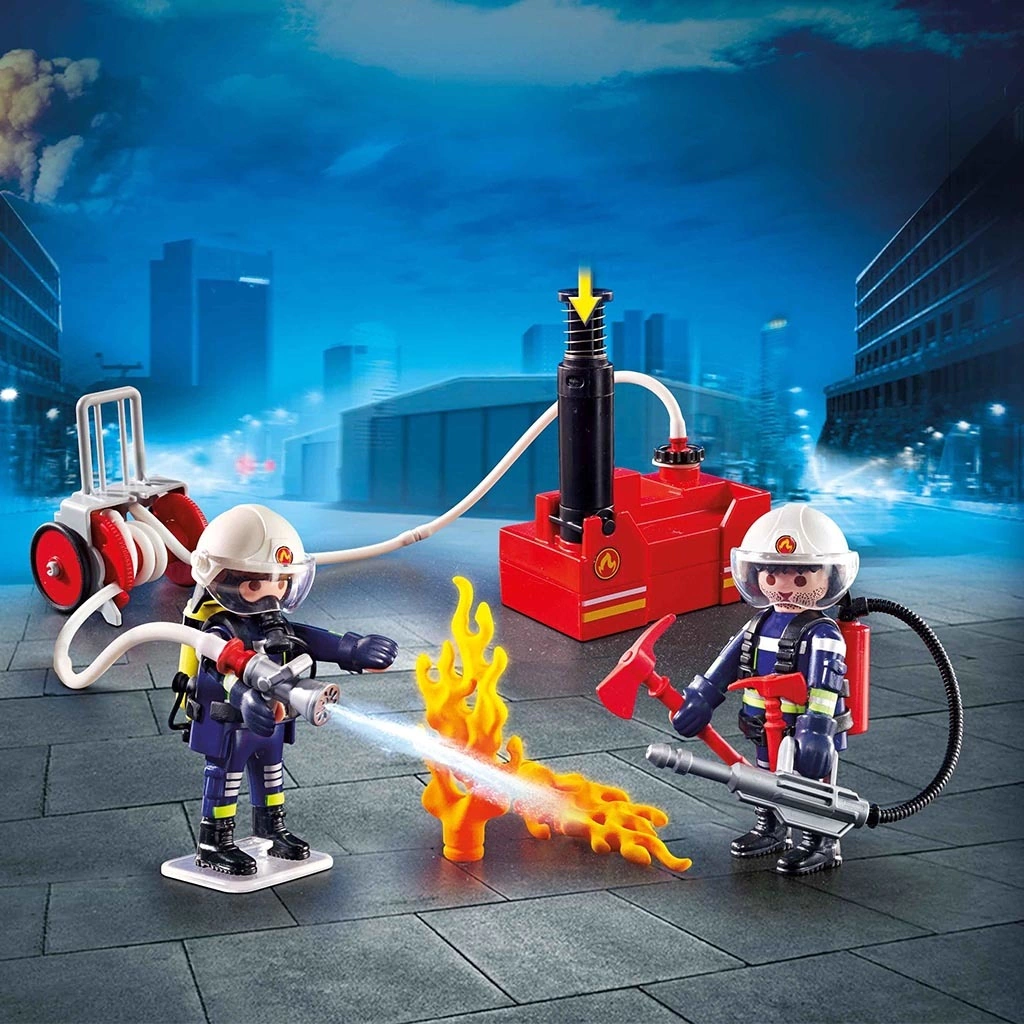 Diversión para los pequeños héroes: los Bomberos de Playmobil con bomba de Agua y muchos accesorios para un juego de roles bien preciso.